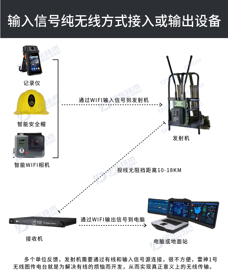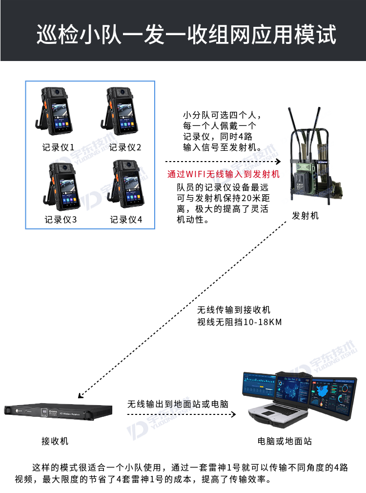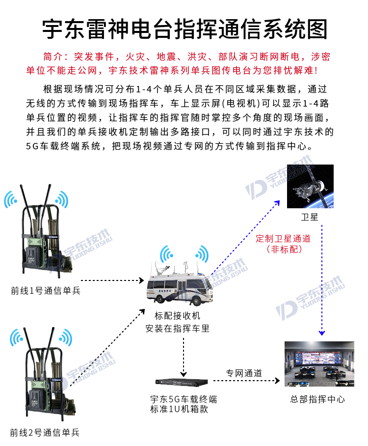 宇東技術雷神1號背負式高清無線圖傳電臺,是公司針對應急救援指揮、公安、反恐作戰(zhàn)、消防救援、邊防執(zhí)勤、海警海關巡檢、部隊拉練演習、森林消防等,在突發(fā)重大事件,斷網(wǎng)斷電,通信中斷的情況下,現(xiàn)場工作人員通過宇東雷神系列單兵圖傳電臺,把現(xiàn)場采集的數(shù)據(jù)實時無線傳輸?shù)街笓]車/臨時指揮部大屏幕,讓指揮部領導對現(xiàn)場情況一目了然,節(jié)省了到達現(xiàn)場的時間,可快速做緊急指揮調度,最大限度的減少突發(fā)事件帶來的各種損失。